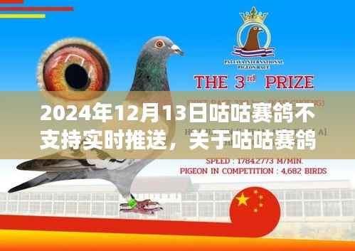 “咕咕赛鸽”在2024年12月13日暂停实时推送服务是为了更好地满足用户需求,提升服务质量和用户体验,虽然这会带来一些不便,但平台会尽力缩短服务暂停的时间,并积极与用户沟通,提供全方位的支持和帮助,我们相信,通过技术升级和优化,平台将为用户带来更加稳定、高效、个性化的服务,感谢大家的理解和支持!